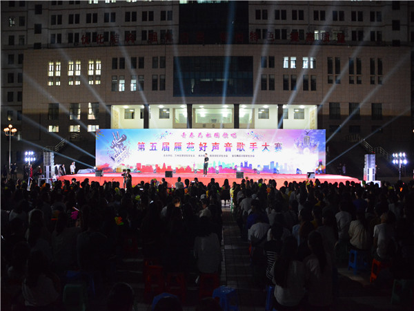 7月3日晚,我校庆祝新中国成立70周年“我和我的祖国”主题宣传教育系列活动——“青春为祖国歌唱”第五届“雁苑好声音”歌手大赛在安亭广场火热开唱。比赛由校学生会主办,旅游管理学院分会及音乐舞蹈学院分会承办,音乐舞蹈学院景璟、周利、孙璟雅三位老师担任评委,校团委书记孙亮、副书记安婧与同学们共同观看了比赛。