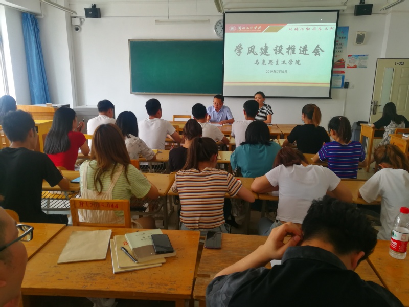 为贯彻学校全年重点工作部署,推进学校“迎评促建”攻坚计划的根本落实, 7月5日中午,马克思主义学院召集各班班委、宿舍长和全体预备党员,组织召开了学期末学风工作总结暨新学期学风建设工作推进会。