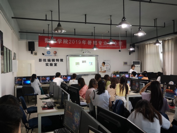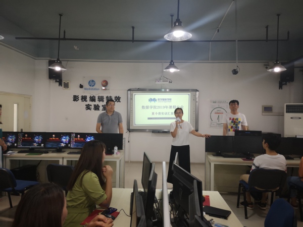 7月20日上午8点10分,兰州文理学院数字媒体学院17计算机应用技术班在1-806实验室开展2019年暑期夏令营成果汇报会,出席本次汇报会的有数字媒体学院院长李恒杰、书记陈小琴、校企合作办主任蔺国梁老师及甘肃大乘影公司技术专家视车晓男。汇报会由甘肃大乘影视公司主持。
