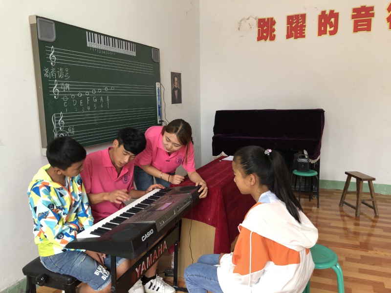 见面仪式之后,正式开始了实践活动的第一堂课。我们开设的课程分别有数学、英语、普通话、音乐舞蹈、美术手工、体育等,同学们根据兴趣来选择他们喜欢的课程,小分队队员们以爱心为出发点,以自身专业特点作为教学优势,用具有亲和力的语言,充满活力的动作,与同学们进行了充分的互动。同时,队员们保持耐心,争取教会所有同学。孩子们也积极学习,热情高涨,听从队员们的安排,认真排练。在所有队员和孩子们的共同努力之下,第二天的支教任务顺利完成了。
