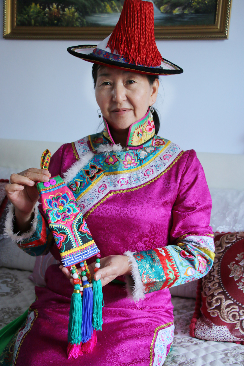 下午,调研团来到裕固族服饰省级传承人安玉芬老师家中分别与4位“非遗传承人”进行了深度访谈并拍摄了影像素材。调研团采取个别访谈的方法,分别与裕固族刺绣市级传承人安龙梅老师、裕固族服饰省级传承人安玉芬老师、安永琴老师以及裕固族原生态民歌市级传承人妥秀梅老师进行了访谈。传承人详细介绍了各自的非遗项目和传承经历,希望年轻人可以通过新的手段帮助他们做好宣传推广,并表示愿意无条件地为大学生的“非遗”文创活动提供帮助和支持。