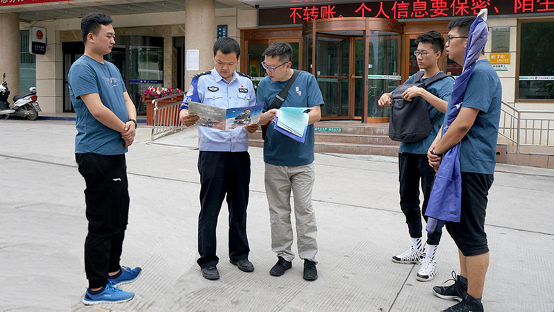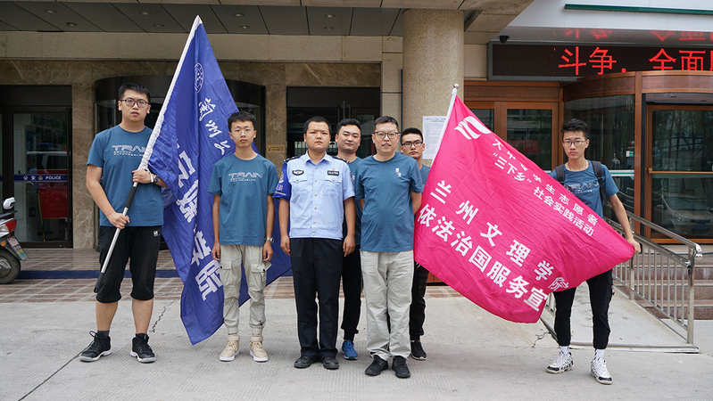 7月24日,兰州文理学院数字媒体学院依法治国服务宣讲团经过一个多小时的行程,抵达兰州市公安局城关分局九州派出所与公安民警一起学习交流法律常识。