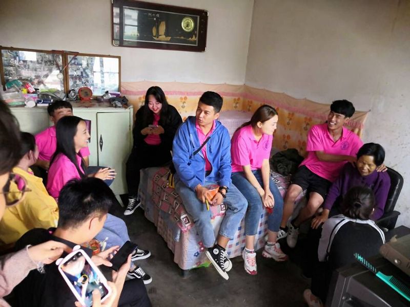 今天,我们小分队成员给孩子们上游戏课。孩子们玩我们教他们独创的游戏,用竹竿做游戏。孩子们欢乐的笑声在山中回荡,而天真的笑脸也永远刻在我们心里。与孩子们相处时间越长,越能感受到孩子们烂漫与无忧无虑。昨晚在与孩子们的交流中,我们得知在村庄中,有这样一位老人默默地在生活,她没有儿女,孤身一人。于是上午我们决定去看望老人并为老人买一些生活用品。在孩子们的带领下,我们来到老奶奶的家中。我们看到奶奶的家中,少有电器,非常朴素。奶奶给我们讲起过往的经历,可以看到奶奶虽然生活艰苦,但对生活充满热爱。我们为奶奶唱歌,捶背,给奶奶带来了欢乐。
