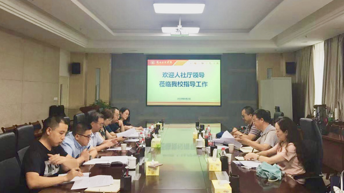 2019年8月2日上午,甘肃省人社厅事业处处长狄尚红、副处长高珠明、主任科员朱宗良一行莅临我校考察调研,校长郑伟强出席会议并讲话,党委教师工作部(人事处)处长郭萍、副处长卢志辉、赵中锋,人事科王小萍、卢明参加了本次调研会议。