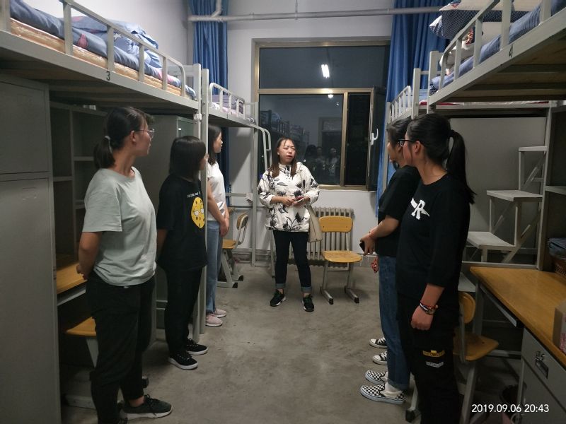 新学期伊始,为了解教育学院新生的住宿情况和卫生情况,教育学院辅导员张红云、康文苗、张嘉穗及各班新生班主任,开展了新生宿舍检查走访活动。