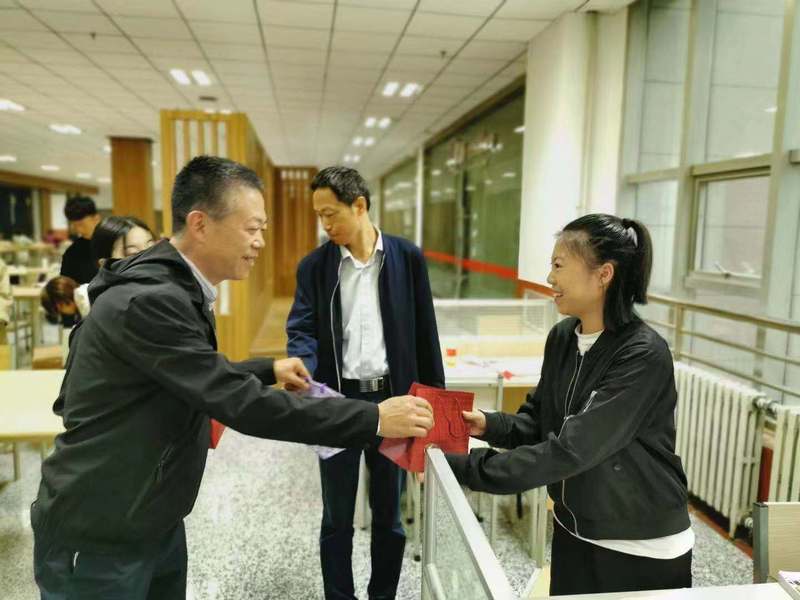随后,李宗刚处长一行前往图书馆,向依然在图书馆复习备考的同学表达最亲切的慰问和关心。一位同学感慨道:“感谢学校送来的月饼和水果,让在自习室刷题的我有了家的感觉,感谢学院,我会好好努力,成功考研。”