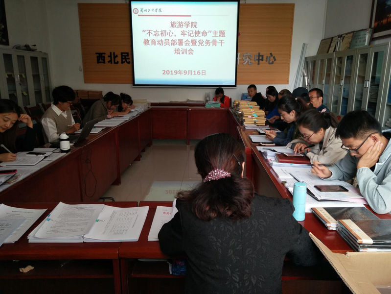 为响应中共中央“不忘初心,牢记使命”主题教育意见,根据《中共兰州文理学院委员会关于开展“不忘初心、牢记使命”主题教育的实施方案》及兰州文理学院“不忘初心,牢记使命”主题教育动员部署会精神,9月16日中午旅游学院在会议室召开“不忘初心、牢记使命”主题教育动员部署会暨党务骨干培训会。学院领导班子成员、党务骨干、全体党员参加了会议。会议由党总支书记李耀荣主持。
