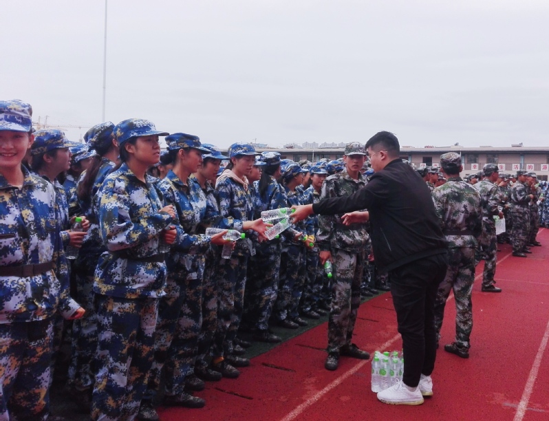 为更好地了解新生的军训生活,促进学院领导和老师与新生之间的沟通和交流,2019年9月17日上午,旅游学院党总支书记李耀荣,学工办主任彭兰玲,以及学院马明兰、张秦、张惠、蒙弘毅、陈喜东等老师,前往第一运动场对我院2019级军训学生及教官表示慰问。
