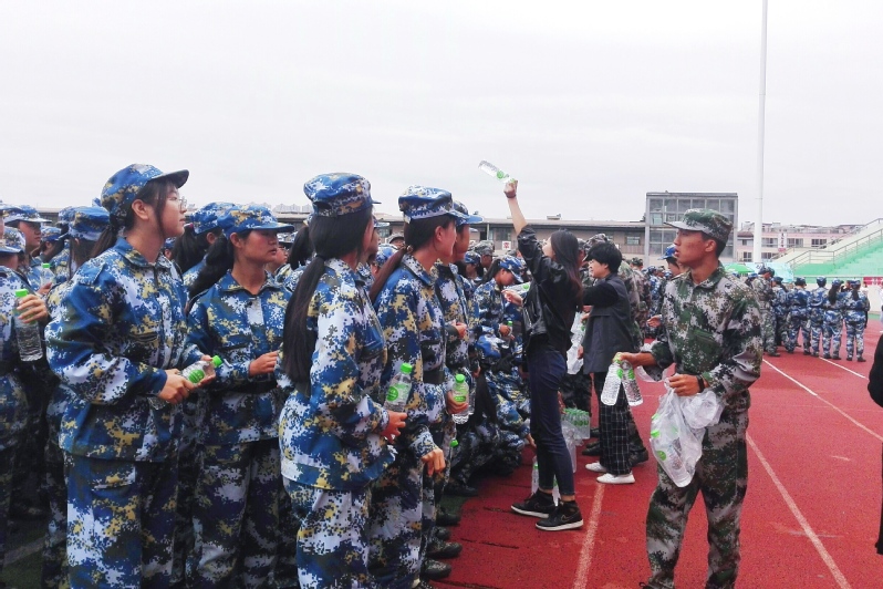 学院领导和老师给军训学生及教官发放饮品,以缓解连续多天的军训带来的疲惫。慰问中,彭老师还向军训新生门提出了四个要求——“感激,团结,纪律,服从”。她希望新生们对协助大家进行军事训练的教官和全程相伴的辅导员老师心存感激,形成团结意识,严格遵守军训纪律,严格服从教官的要求练好每个科目,做好每一个动作。他还要求同学们要热爱祖国,热爱集体,争当模范,真正将军训当做大学生活中一次重要的历练过程。旅游学院新生们深受鼓舞,大家对圆满完成军训任务更加充满了信心。最后,学院领导、教师与全体参训学生合影留念,本次慰问在一片掌声中顺利结束。
