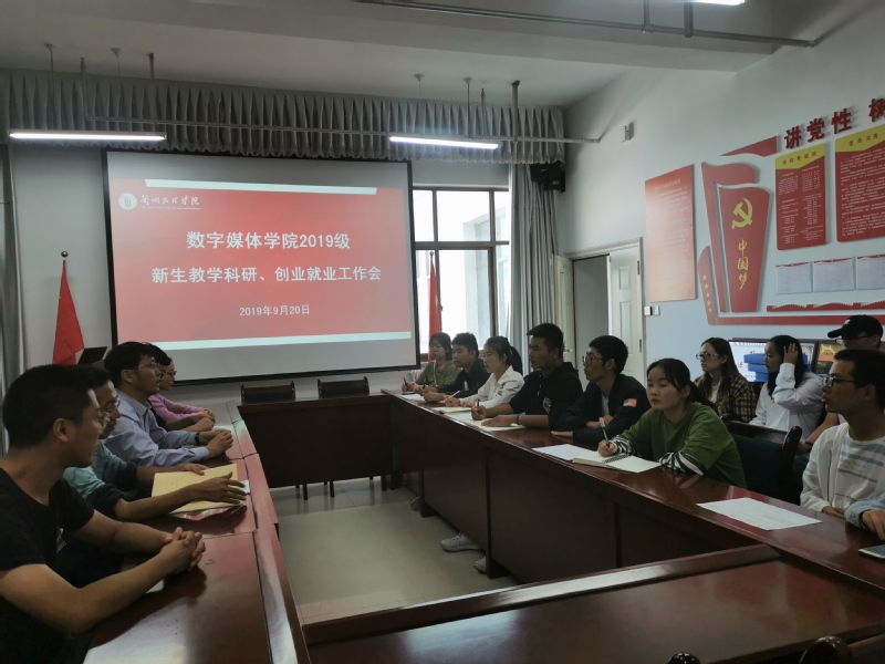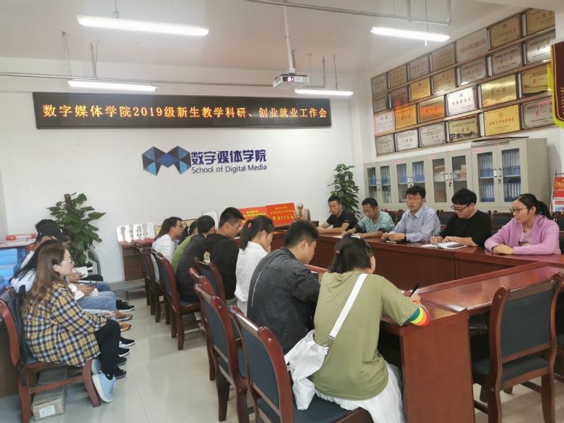 为了有效的使数字媒体学院2019级新生在下周开课前,能够很快融入到学校的学习生活,为新生班干部答疑解惑。数字媒体学院于2019年9月20日在学院会议室召开了“2019级新生教学科研、创业就业工作会”,数字媒体学院教学科研办、创业就业办、实验中心全体教工,2019级新生班长和学习委员参加此次会议,会议由数字媒体学院院长李恒杰教授主持。
