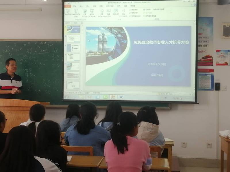 9月20日上午,马克思主义学院2019级思想政治教育专业介绍会在3号楼303教室举行。学院思想政治教育教学部主任张吉军博士主持专业介绍会。
