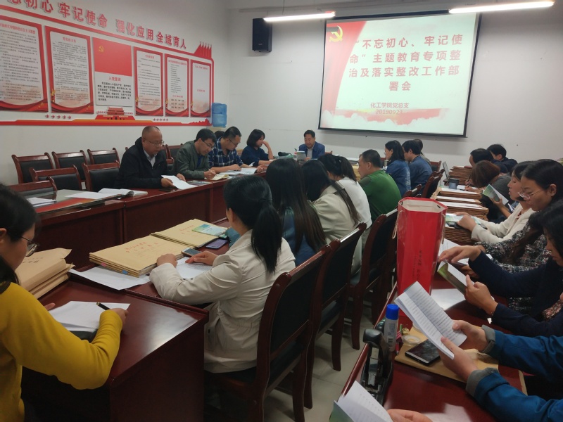 随着“不忘初心、牢记使命”主题教育的持续深入,9月23日下午,化工学院在学院会议室召开“不忘初心、牢记使命”主题教育专题整治及落实整改部署会。学院领导及全体教工党员出席会议。会议由学院副院长杨光主持。