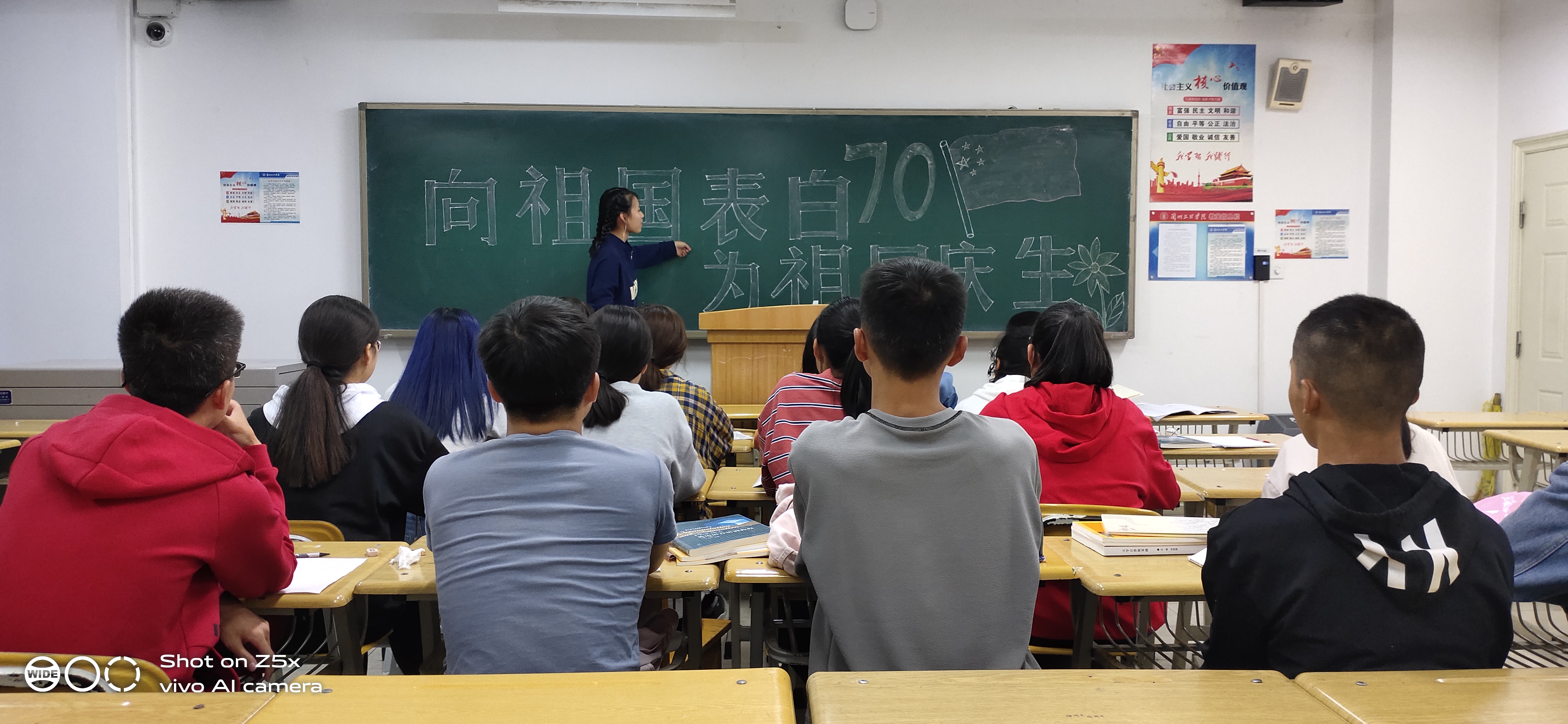 此次主题团日活动形式多样,内容丰富。各班团支部组织观看爱国电影、唱爱国歌曲、讲爱国故事、“对祖国母亲的生日祝福”等活动。同学们回顾了过去70年来中国所发生的巨变:港澳回归,洗刷了百年国耻;2008北京奥运会,全世界的目光聚焦中国……从百废待兴到蓬勃发展,同学们感受到了中华民族的智慧和力量。在漫漫的历史长河中,70年不过是短暂一瞬,但对于中国、对于中国人民来说,70年风雨兼程,70年艰苦奋斗,中国的快速发展是一代又一代人努力奋斗的结果。