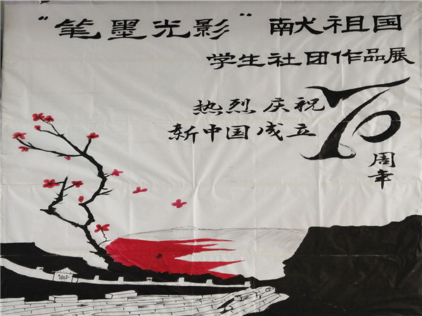 在祖国70华诞到来之际,我校书法协会、美术协会、摄影协会联合举办了“庆祝中华人民共和国成立70周年-笔墨光影献祖国”学生作品展,在南、北校区连续展出3天。