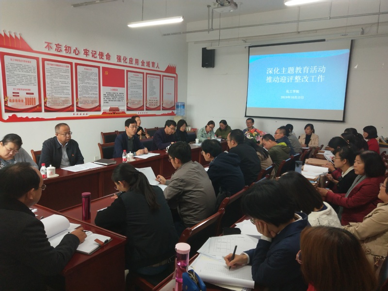 2019年10月15日下午,化工学院召开“深化主题教育活动,推动迎评整改工作”会议。全体教工参加会议,会议由党总支书记张兴辉主持。