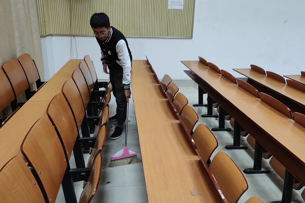 活动开始后,张秦老师首先对学生第二党支部中所存在的问题做了总结,对一些党员还未进行实名注册学习强国和甘肃党建的,督促其尽快完成注册并认真学习。接着,学生第二党支部所有党员积极参与到“清扫教室卫生、不给垃圾留死角”的志愿服务活动中去,大家分工明确、积极配合,活动开展十分迅速有效。