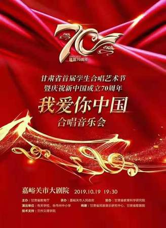 2019年10月19日晚,由甘肃省教育厅体育卫生与艺术教育处组织的甘肃省首届学生合唱艺术节暨庆祝新中国成立70周年“我爱你中国”合唱音乐节活动在嘉峪关大剧院成功举行。