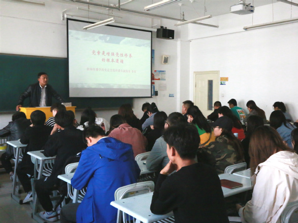10月22日中午,新闻传播学院根据省委“不忘初心、牢记使命”主题教育领导小组办公室要求,结合《中共兰州文理学院委员会关于开展“不忘初心、牢记使命”主题教育的实施方案》《中共兰州文理学院委员会“不忘初心、牢记使命”主题教育调研工作方案》文件精神,开展“不忘初心、牢记使命”主题教育专题党课,本次党课由新闻传播学院党总支组织委员、副院长李军主讲,新闻传播学院全体学生党员参加此次党课。