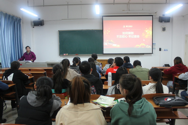 2019年10月23日下午,外语学院根据《中共兰州文理学院委员会关于开展“不忘初心、牢记使命”主题教育的实施方案》的要求,开展“不忘初心、牢记使命”主题教育专题党课。学院党总支副书记、副院长狄敏在1-506教室为学生讲授党课。学院预备党员、入党积极分子学生干部共计40余人聆听了此次党课。