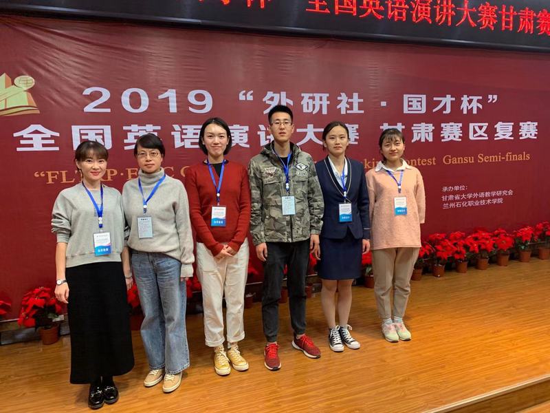 10月26-27日,2019年度“外研社·国才杯”全国英语演讲、阅读、写作大赛甘肃赛区复赛分本科组、专科组分别在西北师范大学、兰州石化职业学院举行。我校选派6名同学分别参加了本科组演讲、阅读、写作比赛,选派3名同学参加了专科组演讲比赛,成绩喜人。