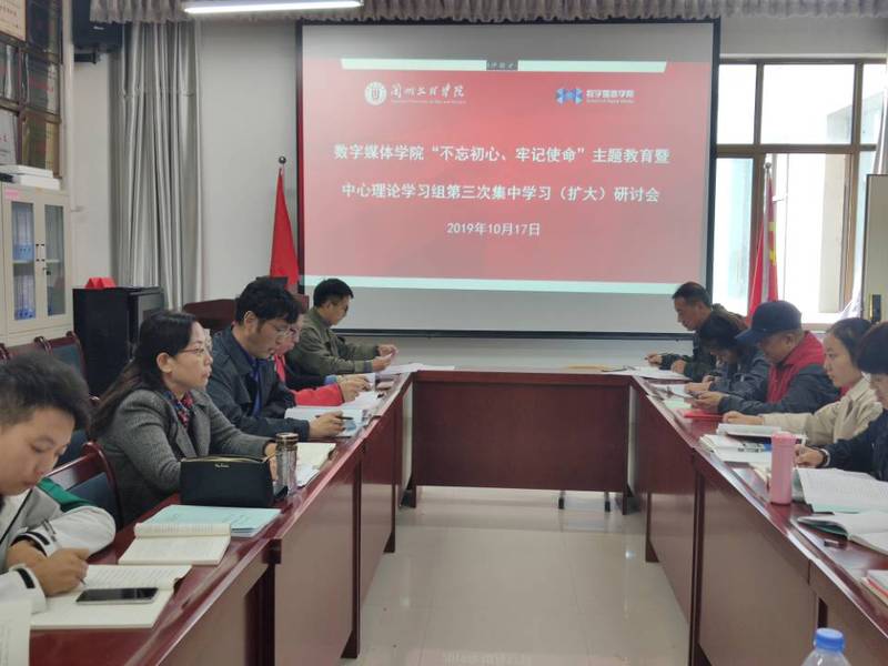 按照校党委和学院党总支“不忘初心、牢记使命”主题教育学习安排, 10月17日,数字媒体学院在2-415会议室召开了“不忘初心、牢记使命”主题教育第三次集中学习研讨会。研讨会由学院党总支书记陈小琴主持,学院党总支成员、各支部书记、党建办成员及全体教工党员与会。
