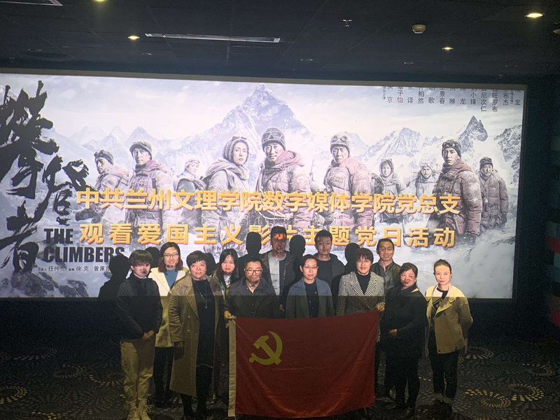 为弘扬爱国主义精神,坚定理想信念,把爱国情、报国志融入到日常生活和学校“迎评促建”工作中去,根据学校“不忘初心、牢记使命”主题教育工作安排,数字媒体学院党总支组织全体教工党员于11月8日中午观看了电影《攀登者》。