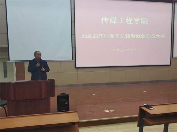 2019年11月5日至6日,传媒工程学院召开2020届毕业生实习总结暨就业动员大会。会议分两天举行,分别为5日中午1点在5-504教室举行广播电视工程本科班会议,6日中午1点在5-205教室举行电子信息工程本科班和通信工程专科班会议。会议由学院院长陈秀武主持,各毕业班班主任、学院就创办、校企合作办及参加2019年实习工作的全体学生参会。