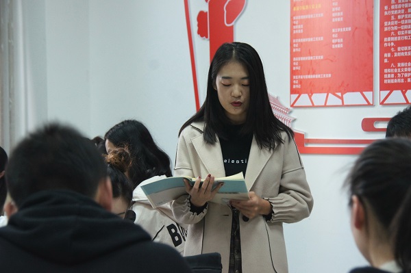 为进一步提高党员的思想高度,加深对主题教育的重大意义、目标任务和要求的理解,2019年11月14日14:30,我院于党员活动室召开了自学成果交流会,我院学生第一、第二和第三党支部所有党员和预备党员参加了本次交流会,活动由我院学生第二党支部书记张秦老师和辅导员陈喜东老师主持。