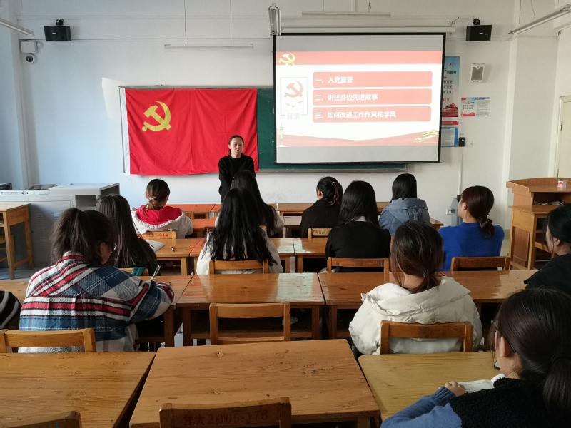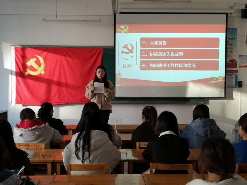 2019年11月21日下午,马克思主义学院学生支部全体预备党员和发展对象在3-303教室开展“忆初心、明职责、迎评建”主题党日活动。本次活动由学生党支部书记张玲佳同志主持。