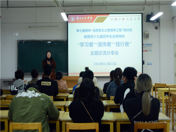 中共第十九届中央委员会第四次会议已圆满落下帷幕,抓好习近平总书记重要讲话精神和十九届四中全会精神的学习贯彻就是当前一个时期最重要的任务。2019年11月21日晚,第七期“青马工程”培训班以小组为单位集中学习十九届四中全会精神。