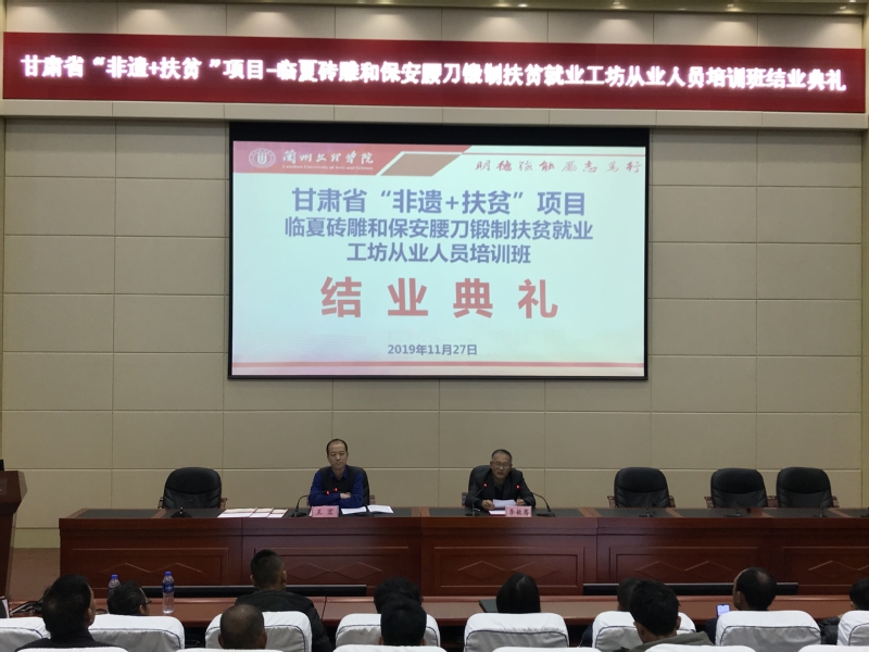 由文化和旅游部非遗司、国务院扶贫办主办,兰州文理学院承办的2019年“非遗+扶贫”项目临夏砖雕和保安腰刀锻制扶贫就业工坊从业人员培训在我校11月27日顺利结业。