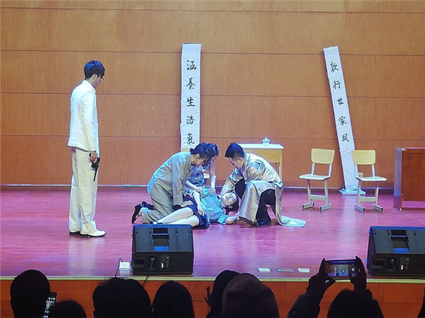 雁苑戏剧社“一年磨一剧”,这部剧从演员选拔、排练到演出整整花费了一年时间。功夫不负有心人,演出现场演员们用诚挚的情感、熟稔的台词、丰富的肢体语言,奉献了一场精彩生动的演出。他们精湛的演技,折服了观众,感染了观众,也撼动着在场每一个人的心灵。剧中共产党人坚贞不屈的高贵品质和坚定不移的革命信仰让人感动落泪,更让人叹服敬佩。通过观看演出,同学们上了一堂深刻的理想信念教育课。