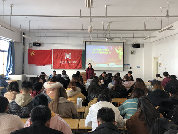 为深入学习贯彻党的十九届四中全会精神,引导广大共青团员自觉将思想和行动统一到全会精神上来,推动全会精神入脑入心,美术与设计学院分团委于2019年12月11日中午在1-504教室组织开展学习贯彻十九届四中全会精神主题团日活动,分团委负责人、全院学生干部共100余人参加了活动,活动由分团委书记唐艳丽老师主持。