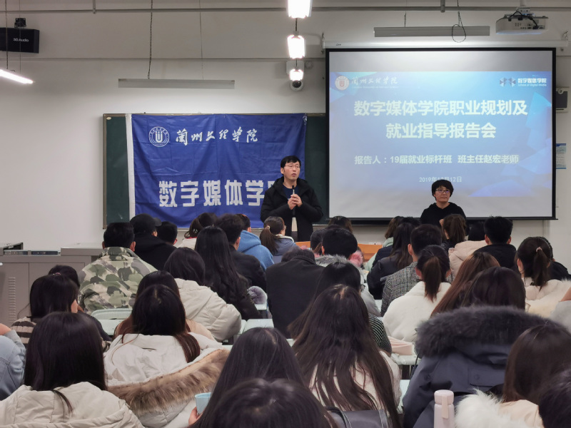 为了更好的促进大学生就业,增强就业学生的社会竞争力,搭建学生就业求职的交流平台,帮助毕业生解决在就业过程中存在的问题。数字媒体学院于12月12日晚19:30,邀请数字媒体学院19届就业率百分之百班班主任赵宏老师在我校2-402教室,为我院毕业生做“职业规划及就业指导”报告会。我院2020届在校毕业生做就业报告。学院20届在校学生以及21届毕业生代表参加此次专题报告会,报告会由数字媒体学院院长李恒杰教授主持。