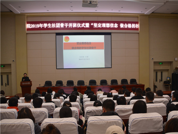 为推动我校学生社团建设,发挥学生社团在学风建设中的积极作用,根据“不忘初心、牢记使命”主题教育关于学生社团的调研情况,针对师生提出的加强对学生社团骨干的培训,在广泛征集意见建议的基础上,校团委组织开展了学生社团骨干培训班。12月15日晚,校团委副书记兼学生会秘书长安婧做了培训班第一讲《坚定理想信念 做合格的社团骨干》。