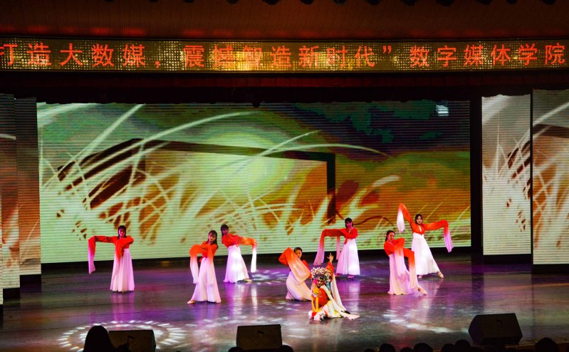 晚会在数字媒体学院舞蹈队带来的舞蹈《tik tok》拉开了帷幕;小品《冷眼相贷》教会了学生如何正确的对待校园贷;数媒榜样在身边(毕业生视频合集)也表现了已经毕业的师哥师姐对学院的美好祝福;藏族歌曲串烧《珠峰之下》展现了藏族学生的能歌善舞,唤起了学生对西藏纯净和美好的向往。晚会有歌曲、舞蹈、相声、舞台剧等不同种类的15个精彩节目,这些节目体现了我院学子参加活动的热情与想象力,表演期间,不时爆发出热烈的掌声与喝彩,相声《智取威虎山》也将晚会推到了高潮,最后在歌曲《在木星》画上了圆满的句号,领导慰问了全体演职人员并合影留念。