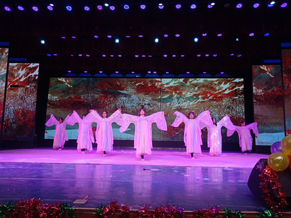 12月25日晚,美术与设计学院在实验剧场举办“绘梦起航,艺展辉煌”迎新年晚会。学院党总支书记贾志明、副院长仇宇、李富红、团学办主任唐艳丽、2019级各班班主任、辅导员以及全体学生参加了活动,校团委副书记安婧作为特邀嘉宾观看了演出。