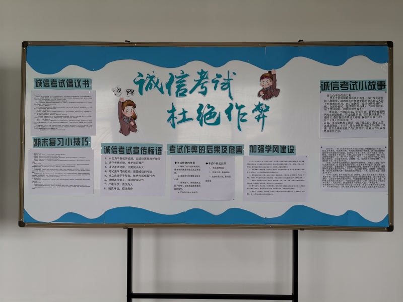 学院 “走廊文化”建设,不仅吸引了更多的学生认真阅读展板内容,更将宣传深入人心;通过有力的宣传,有助于引导学生树立正确的世界观、人生观、价值观和择业观,尤其是近期的“学以载道”、“诚信考试拒绝作弊”的专项宣传,在引导良好 “学风、考风”方面有积极作用。
