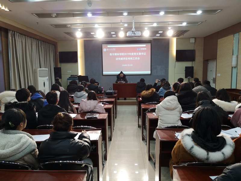 会上,党建办主任赵世林首先宣读了《数字媒体学院2019年度党支部书记述职评议考核工作实施方案》;随后,教工党支部书记洪晓芬、马少斌、荆波;学生党支部书记杨波、王士勇、刘洁依次围绕新时代高校党建“双创”工作 “七个有力”要求开展工作情况和工作成效,师生思想政治工作情况,党建中存在的突出问题和今后加强与改进工作的思路举措等方面进行了述职;学院无党派知识分子代表、学校高级知识分子联合会副主席张旭老师发表了参会感言:“作为党外知识分子,要毫不动摇的拥护中国共产党的领导;不断增强“四个意识”、坚定“四个自信”、做到两个“维护”,切实增进对中国共产党的政治认同、思想认同、理论认同和情感认同。”