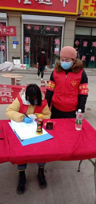 群众在哪里,志愿者就到哪里。面对疫情,外语学院多名返乡大学生迅速响应家乡政府抗击疫情的号召,积极投身疫情防控志愿服务工作。连日来,她们的身影遍布在大街小巷、小区门口和乡村路口。她们在做好自身防护的同时,通过发放告知书、悬挂横幅等多种形式,做好疫情防控政策措施的宣传解读工作;配合所在镇街的农村社区,开展群众引导劝导、出入口监测点排查等工作,齐心协力防止疫情输入扩散风险。家住天水市武山县龙台镇杨咀村的杨转红同学,于1月28日积极响应村委会号召,自愿加入到志愿服务队开展志愿服务活动,经过前期的培训、做好自身防护后,她随村委会工作人员一起对全村214户1100余人逐个进行入户调查摸底、核查登记。学生马青青、姚学倩、李超凡、胡彩玲等同学也积极参与到当地的志愿活动中。