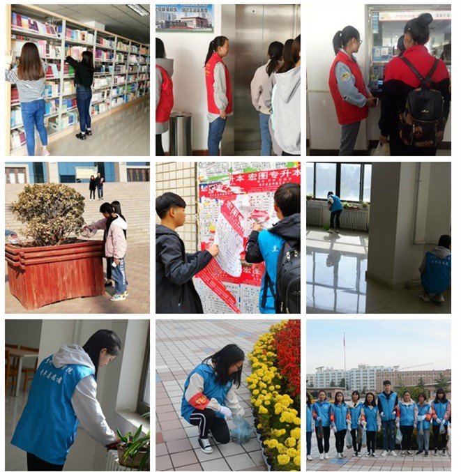 校园文明建设,离不开每一名师生的积极行动。我校青年志愿者们自觉承担起校园文明倡导者、示范者、引导者、监督者的光荣职责。他们常年坚持、风雨无阻,在学校设立 “校园文明监督岗”,开展“文明就餐引导”“水房秩序疏导”“图书馆清扫整理”“助力校园清洁”等活动,引导全体同学在日常行为中文明修身、厚德端行。