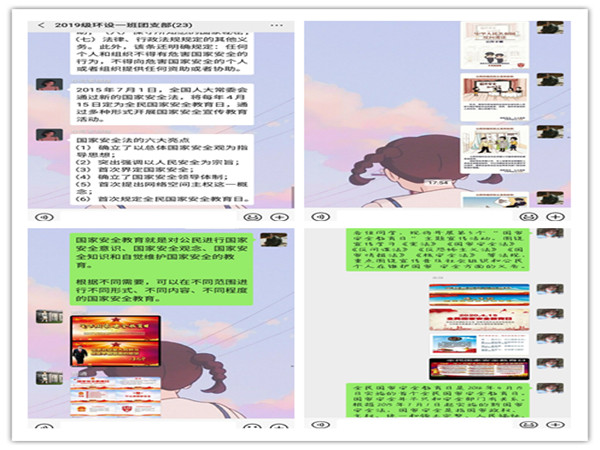 会上,李晶晶老师普及了国家设立“全民国家安全教育日”的来历、内容及重要意义等内容,分享了法制在疫情防控工作的作用以及作为当代大学生维护国家安全我们能做什么。本次主题团日紧紧围绕“坚持总体国家安全观,统筹传统安全和非传统安全,为决胜全面建成小康社会提供坚强保障”这一主题,依托班级QQ群,以“青年大学习”为抓手,组织大家通过学习《中华人民共和国宪法》、《国家安全法》等相关法律知识,不断增强青年学生的国家安全意识,自觉关心、维护国家安全。