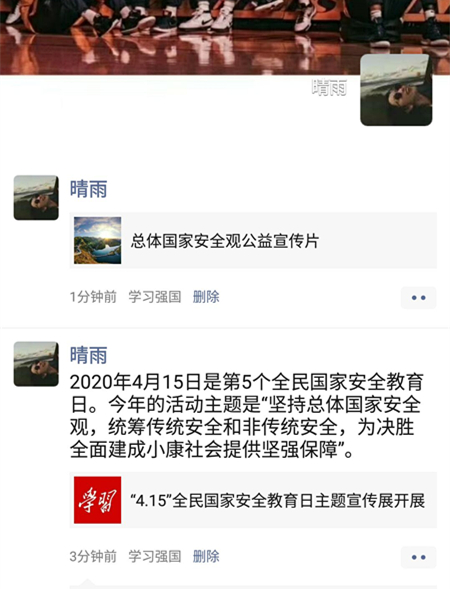 会后,所有党员以“全民国家安全教育日--我是宣传员”为主题,在微信、QQ等朋友圈分享、推送国家安全教育内容。营造维护国家安全的良好社会氛围。