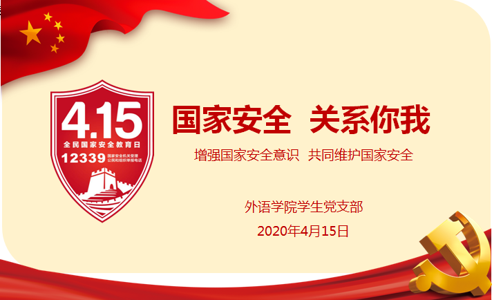 4月15日是第五个全民国家安全教育日,外语学院学生党支部通过“学习强国视频会议”平台开展以“国家安全、关系你我”为主题的线上党日活动,支部全体党员参加,会议由学生党支部书记魏万东主持。