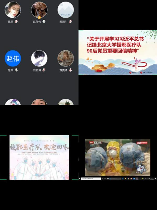 2020年4月22日晚上8点,马克思主义学院思想政治教育班在分团委书记范婷的主持下召开了“关于开展学习习近平总书记给北京大学援鄂医疗队90后党员重要回信精神”的主题班会。