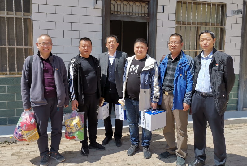 在郭家岔村,王迎春书记代表学院向驻村干部、我校驻桐川镇直属党支部书记、我院副书记副院长赵宁送了生活慰问品和防护口罩,代表金融系学生党支部向郭家岔村党支部赠送了支部活动用品。