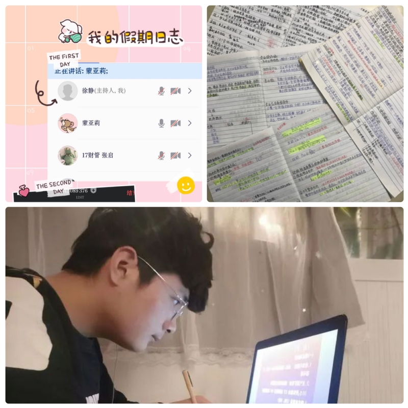 19级会计与统计核算2班团支部在支部群里回味了近期任课教师线上教学的学习任务。团支书王梦茹同学说:“线上教学提高了我的自律能力,提升了我的全面素养。疫情也给我和父母提供了相互交流的机会,还让我在家务劳动中锻炼身体,明白认识人与自然是和谐共生的”。