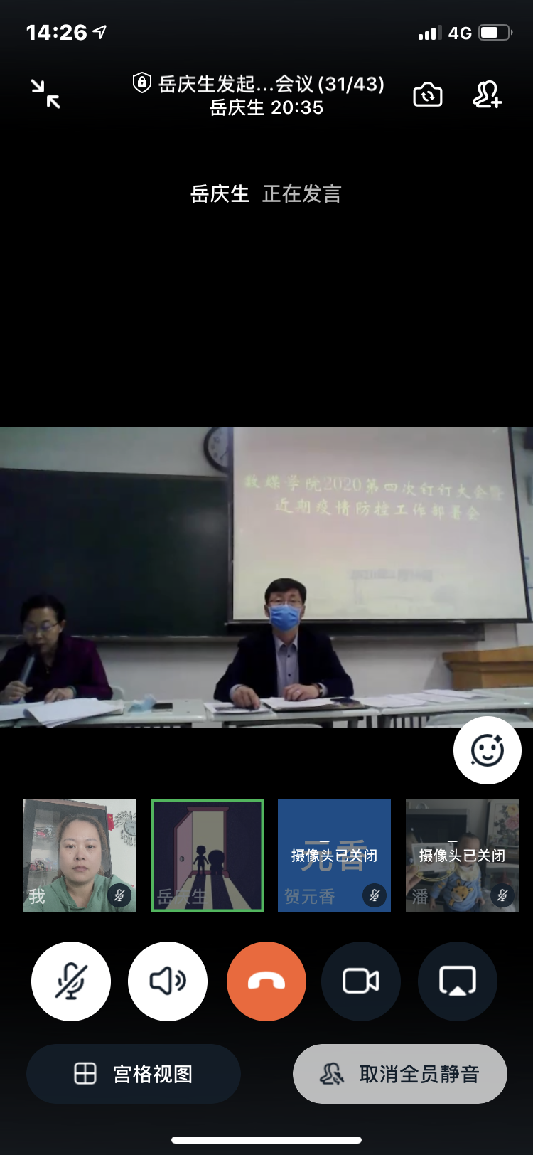 数字媒体学院于4月30日下午14点在2号教学楼412教室,使用陇政钉在线平台召开2019-2020第二学期第四次钉钉大会暨近期疫情防控工作部署会。会议由李恒杰院长主持,学院全体坐班人员到场参加,其他人员同步在家参加钉钉视屏会议。