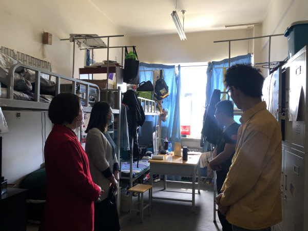 在走访过程中,李耀荣书记指出当下疫情还未结束,各位同学在准备毕业各项事宜的同时一定要注意防护,平时在学习生活中一定要勤洗手、勤开窗;要减少到人员密集的公共场所活动;宿舍内一定要时刻保持卫生清洁,要勤晒衣被;外出活动一定要佩戴口罩;餐具要保持清洁,饮食要注意营养搭配;要勤运动,要按学校规定保证一天乘、午、晚三测体温;每天要按时回宿舍、积极配合晚点名。彭兰玲主任强调,虽然现在防控形势见好,但绝不能松懈大意,依然要慎终如始,作为大学生一定要做好自己该做的事情,一定要听从学校安排和管理;虽然同学们很多都是第一次尝试网络学习,但千万不要懈怠,现在网上学习、网上办公已渐渐成为常态,大家要学会适应新变化、跟上时代不落伍。夏季气温高,细菌容易滋生,彭老师叮嘱同学们要经常打扫卫生、经常开窗通风换气、保持室内清洁。此外,学院老师还深入地了解了毕业生的就业和考研状况,鼓励正在求职的学生好好做准备,积极参加招聘会,对于考研进入复试的学生表示了衷心的祝愿,并为其研究生复试准备工作提出了建议。