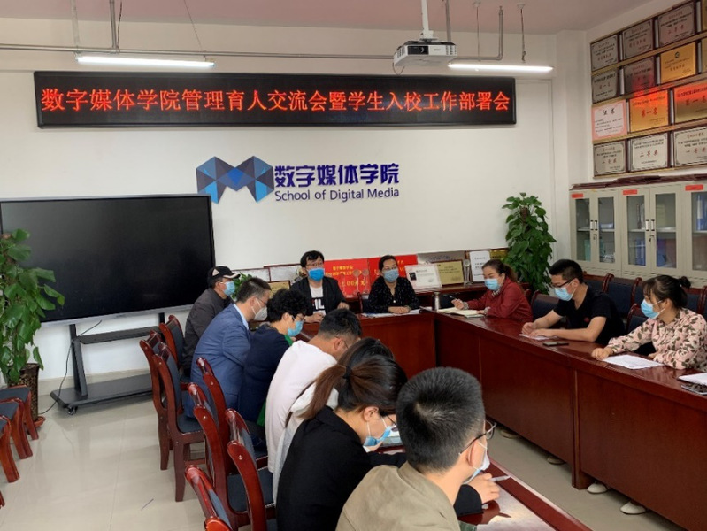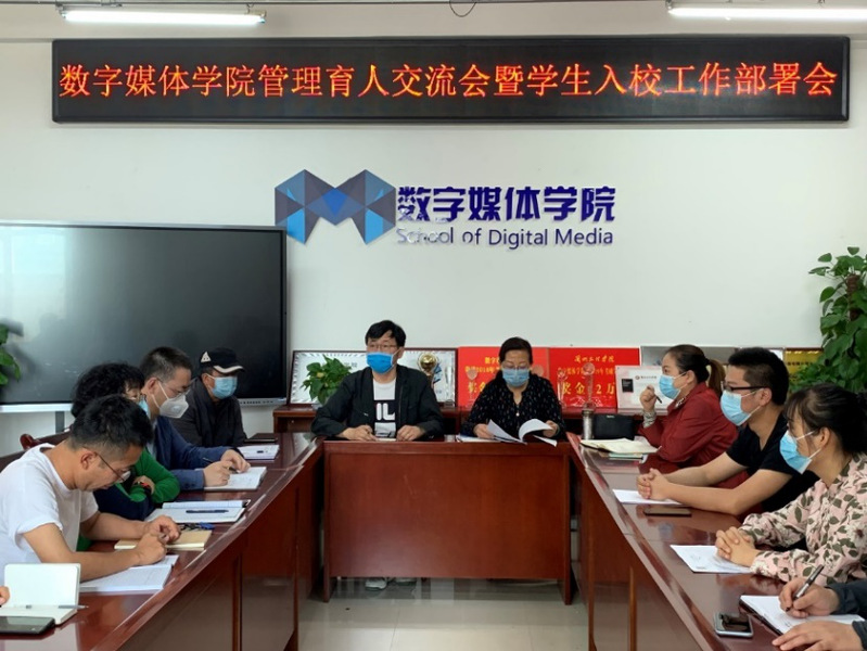 2020年5月19日上午9时,数字媒体学院院长李恒杰、书记陈小琴、副院长黄珍、学院办公室主任高毅、实验中心主任洪晓芬、团学办主任荆波、教学科研办负责人陈璟杰及全体坐班人员在学院会议室召开管理育人交流会暨学生入校工作部署会。